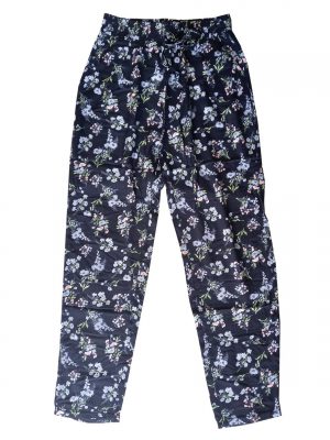 Παντελόνι σε μαύρο χρώμα με μπλε λουλούδια.