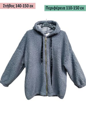 Μπουκλέ  ζακέτα με κουκούλα. Κλείνει με φερμουάρ και έχει τσέπες στο πλάι