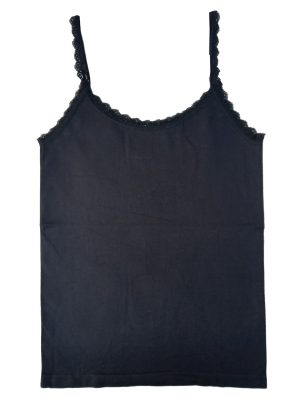 Ελαστικό μπλουζάκι- τοπ μονόχρωμο με λεπτές τιράντες από δαντέλα .