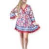 Φόρεμα boho με φουντάκια στολισμένο περιμετρικά και σχέδιο κοράλλια .