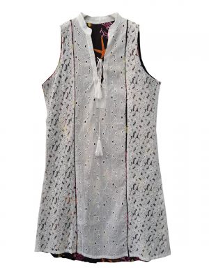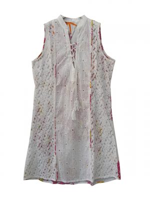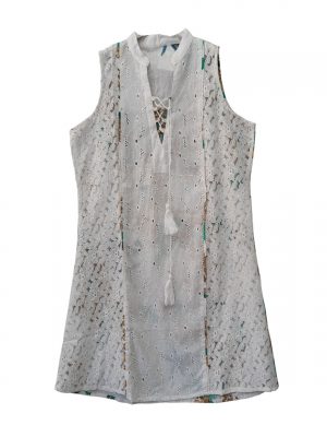 Φόρεμα βαμβακερό με δαντέλα μπροστά και ύφασμα πίσω με χρωματιστά σχέδια.