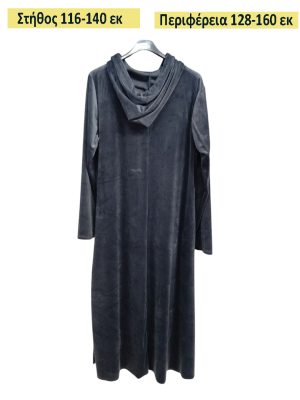 Φόρεμα μακρύ σε ίσια γραμμή βελούδο με κουκούλα και εσωτερικές τσέπες.