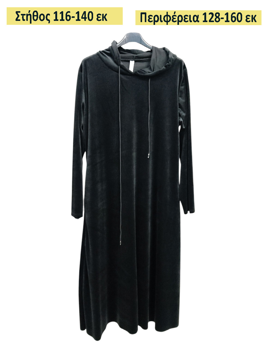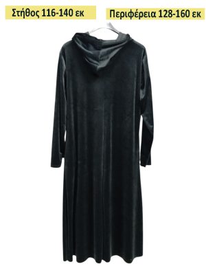 Φόρεμα μακρύ σε ίσια γραμμή βελούδο με κουκούλα και εσωτερικές τσέπες.