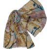 Φουλάρι με ασημοκλωστές και λουλούδια σε μπεζ απόχρωση