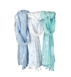 Φουλάρι με μεταλλικό τύπωμα πεταλούδες και φουντίτσες
