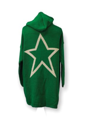 Plus Size Ζακέτα πλεκτή μακριά με Χρυσαφί αστέρι στην πλάτη και κουκούλα.