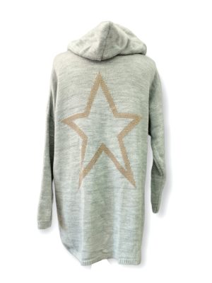 Plus Size Ζακέτα πλεκτή μακριά με Χρυσαφί αστέρι στην πλάτη και κουκούλα.