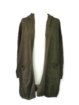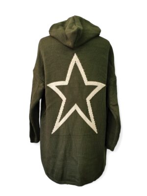 Plus Size Ζακέτα πλεκτή μακριά με Χρυσαφί αστέρι στην πλάτη και κουκούλα.