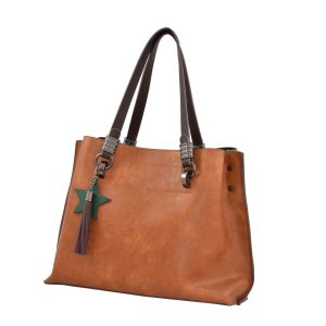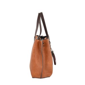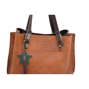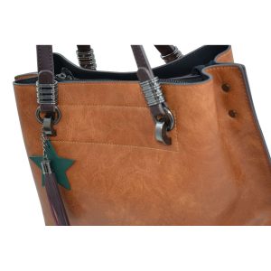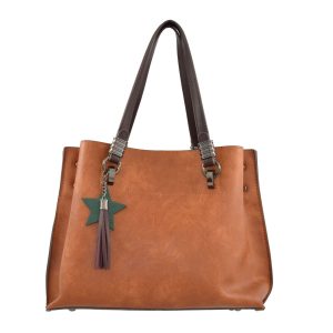 Γυναικεία τσάντα δερματίνη σε ταμπά χρώμα.