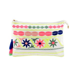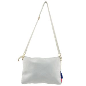 Γυναικεία τσάντα χιαστή υφασμάτινη, σε σχήμα φάκελος με φουντίτσα.