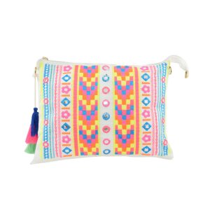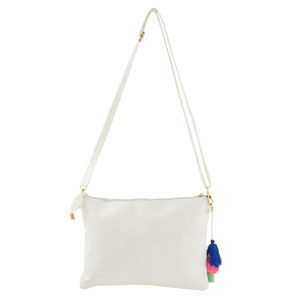 Γυναικεία τσάντα χιαστή υφασμάτινη, σε σχήμα φάκελος με φουντίτσα.
