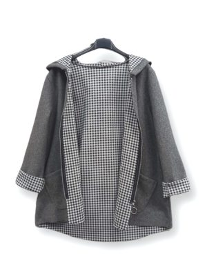Γυναικείο σακάκι με φερμουάρ, τσέπες και κουκούλα. Εσωτερικά είναι με καρό σχέδιο επενδυμένο με καρό σχέδιο που το κάνει casual.