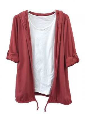Ζακέτα και τοπ από μαλακό βαμβάκι, που εφαρμόζει ομοιόμορφα σε όλους τους τύπους σώματος με δώρο το κολιέ Με κουμπί στα μανίκια για να μαζεύονται και κορδόνι στο τελείωμα εάν θέλει κάποιος να το μαζέψει.