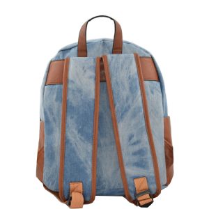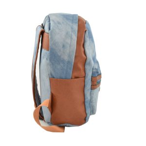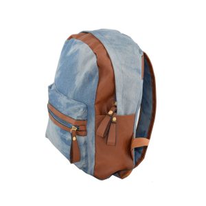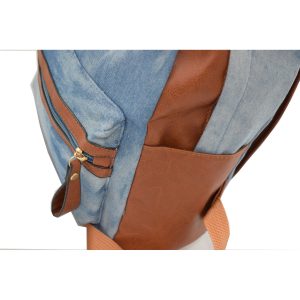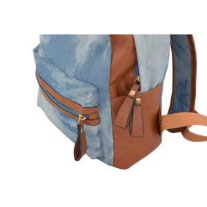 Σακίδιο πλάτης  με τζιν υφή και λεπτομέρειες από δερματίνη σε καφέ απόχρωση.