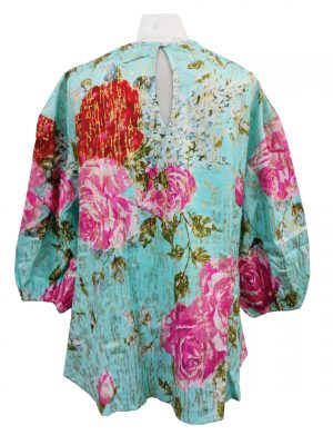 Μπλούζα floral με χρυσό τύπωμα και λάστιχο στο μανίκι.