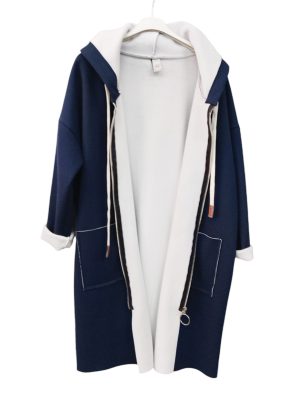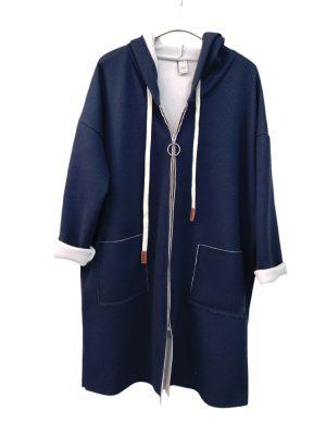 Έχει κουκούλα, ασημί φερμουάρ και εξωτερικές τσέπες.
