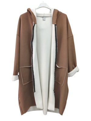 Λεπτό και ζεστό χάρη στη γούνινη επένδυσή του. Το χρώμα της επένδυσης είναι ιβουάρ και σε συνδυασμό με το σκούρο χρώμα του παλτού δημιουργεί μια όμορφη αντίθεση.