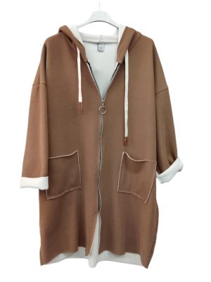 Έχει κουκούλα, ασημί φερμουάρ και εξωτερικές τσέπες.