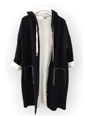 Λεπτό και ζεστό χάρη στη γούνινη επένδυσή του. Το χρώμα της επένδυσης είναι ιβουάρ και σε συνδυασμό με το σκούρο χρώμα του παλτού δημιουργεί μια όμορφη αντίθεση.