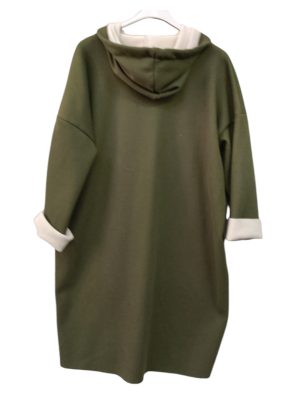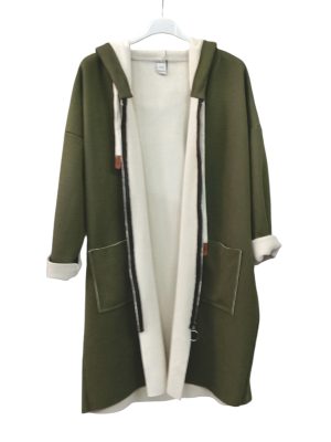 Λεπτό και ζεστό χάρη στη γούνινη επένδυσή του. Το χρώμα της επένδυσης είναι ιβουάρ και σε συνδυασμό με το σκούρο χρώμα του παλτού δημιουργεί μια όμορφη αντίθεση.