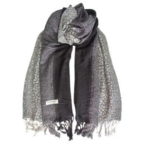 Πασμίνα με σχέδια animal και κρόσσια σε τριχρωμία .