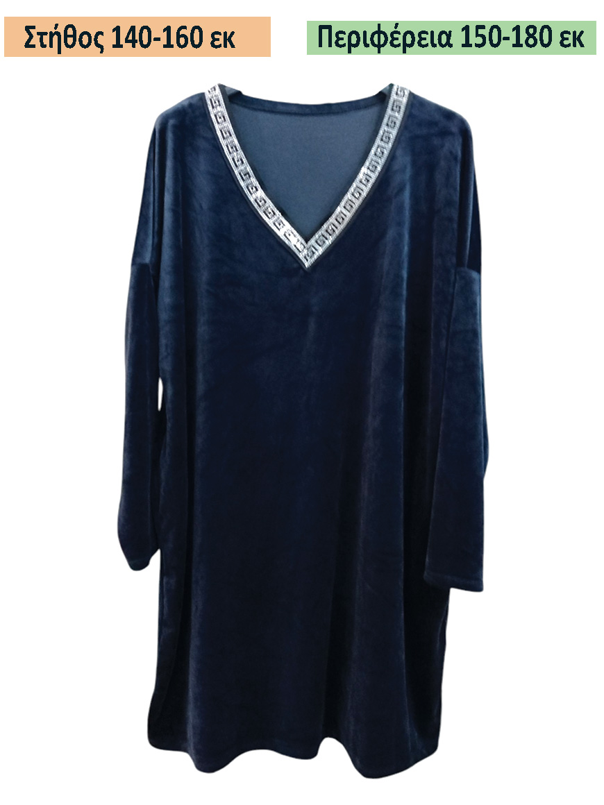 Βελούδινο Μπλουζοφόρεμα με V λαιμόκοψη που στολίζετε με στρας.