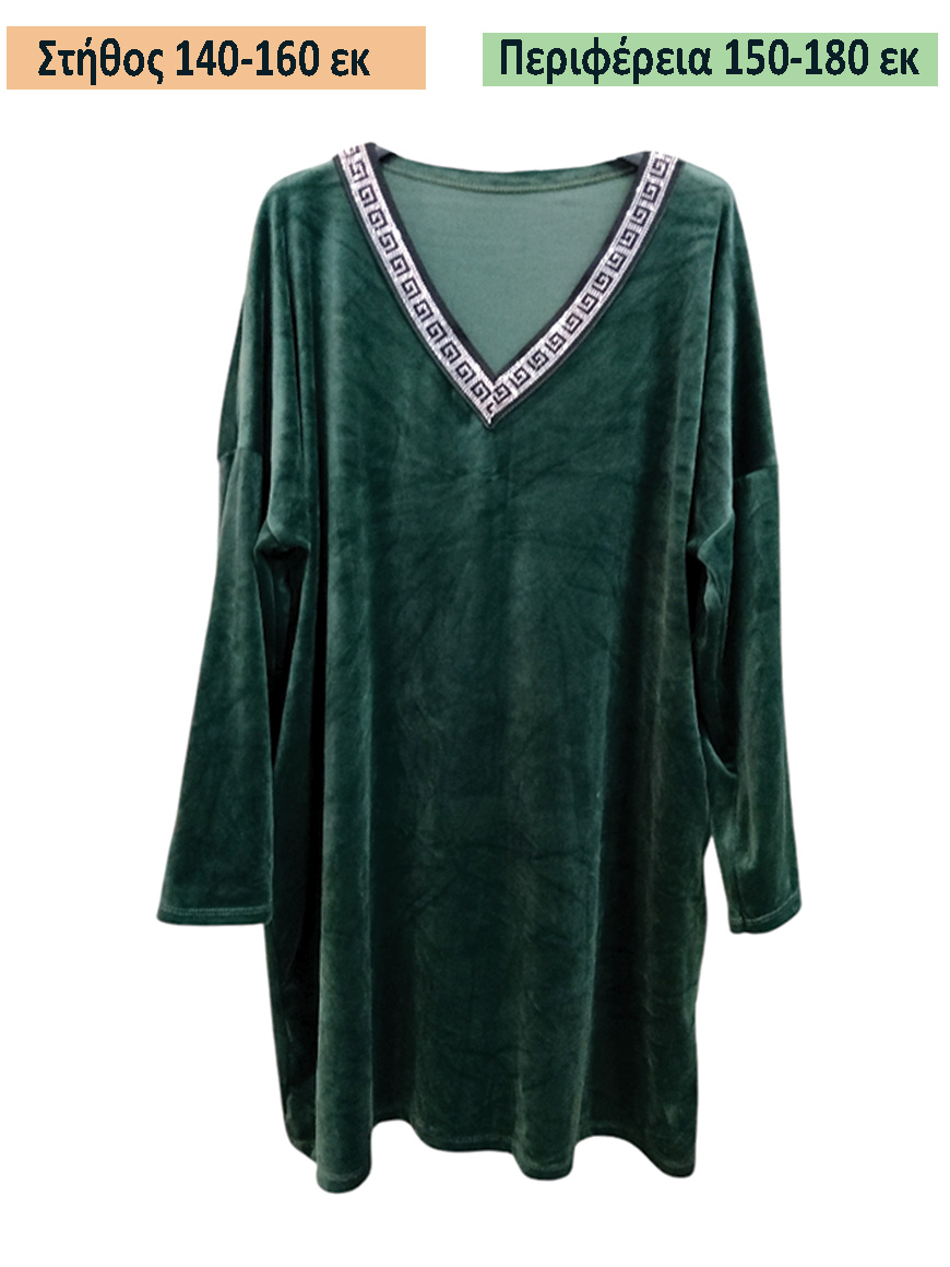 Βελούδινο Μπλουζοφόρεμα με V λαιμόκοψη που στολίζετε με στρας.
