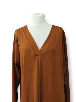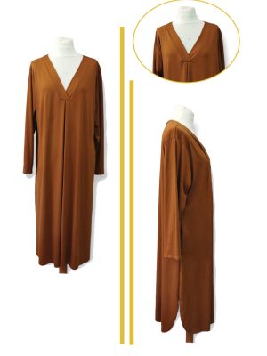 PLUS SIZE Φόρεμα μακρύ με λαιμόκοψη V σε ίσια γραμμή , εσωτερικές τσέπες και με σκίσιμο στα πλάγια.