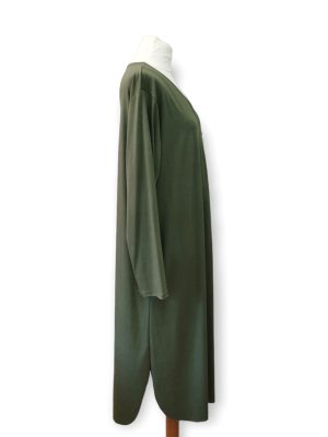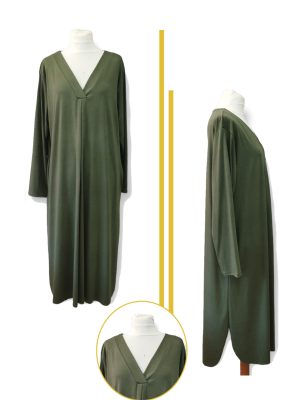 PLUS SIZE Φόρεμα μακρύ  με λαιμόκοψη V σε ίσια γραμμή , εσωτερικές τσέπες και με σκίσιμο στα πλάγια.