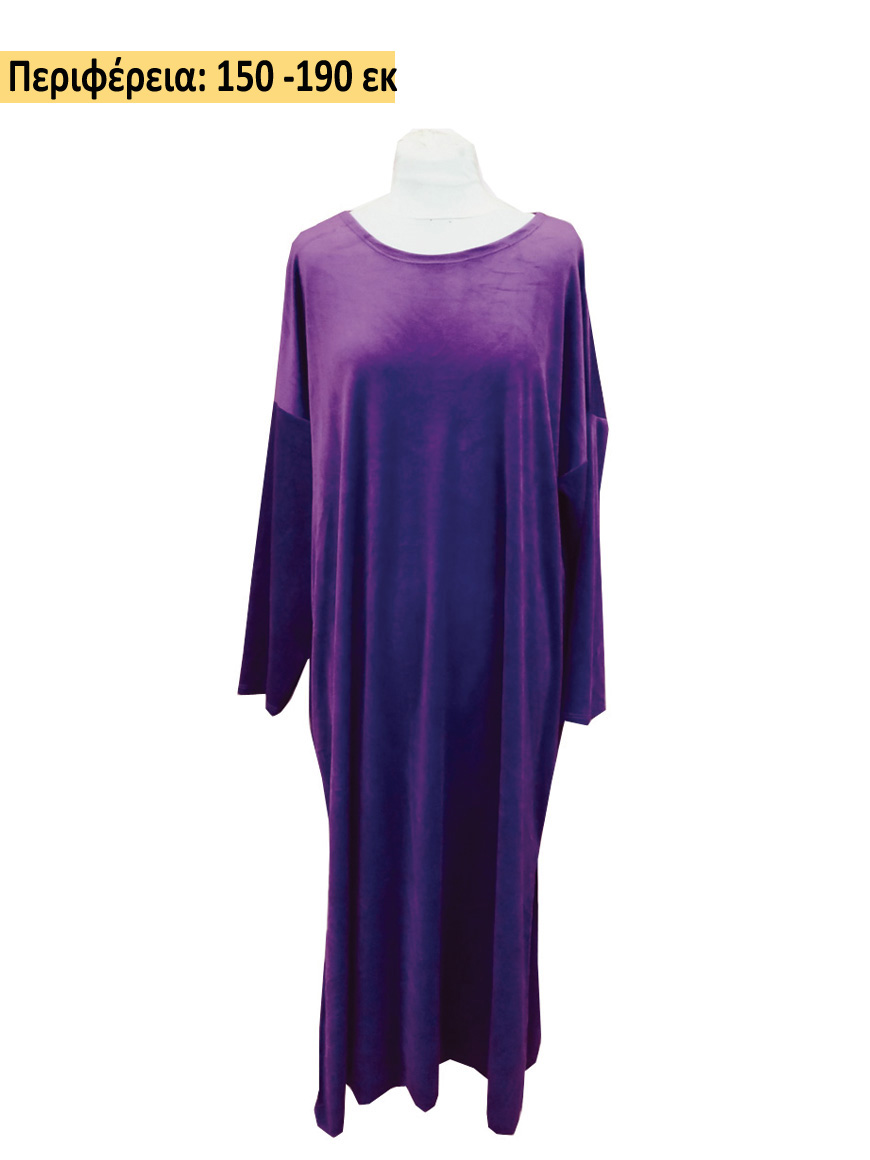 PLUS SIZE Φόρεμα μακρύ σε ίσια γραμμή βελούδο με σκίσιμο στα πλάγια.