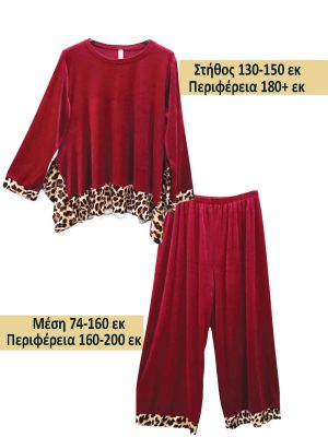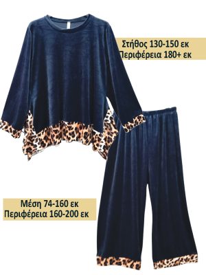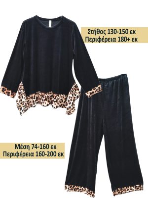 Βελούδινο Plus Size Σετ με ανιμαλ λεπτομέρειες στο τελείωμα