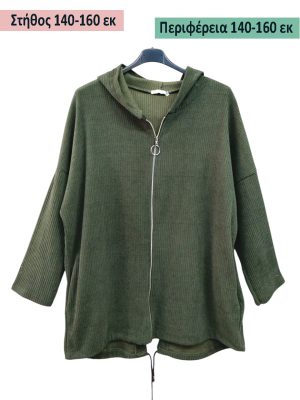 Plus Size ασύμμετρη ζακέτα με κουκούλα, φερμουάρ και τσέπες.