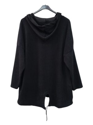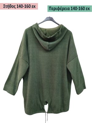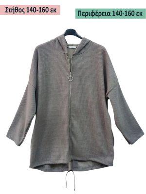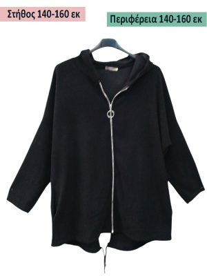 Plus Size ασύμμετρη ζακέτα με κουκούλα, φερμουάρ και τσέπες.