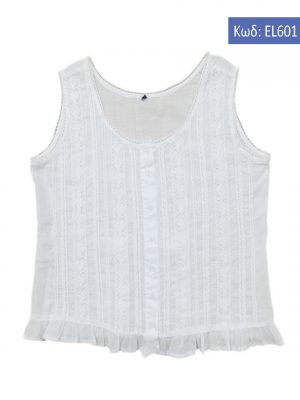 Τοπάκι αμάνικο κοφτό με κέντημα και κορδονάκι στην πλάτη για καλύτερη εφαρμογή.