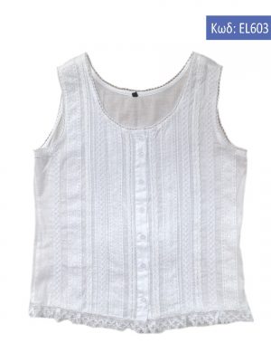 Τοπάκι αμάνικο κοφτό με κέντημα και κορδονάκι στην πλάτη για καλύτερη εφαρμογή.