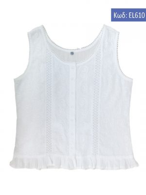 Τοπάκι αμάνικο κοφτό με κέντημα και κορδονάκι στην πλάτη για καλύτερη εφαρμογή.