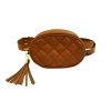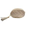 Γυναικείο τσαντάκι μέσης δερμάτινο  σε σχήμα οβάλ με φουντίτσα