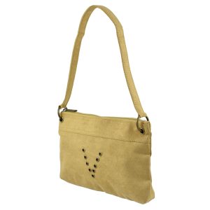 Τσαντάκι ώμου σε στιλ φάκελο καστόρι με φερμουάρ και διακριτικά μεταλλικά στοιχεία σε μπρονζέ χρώμα .
