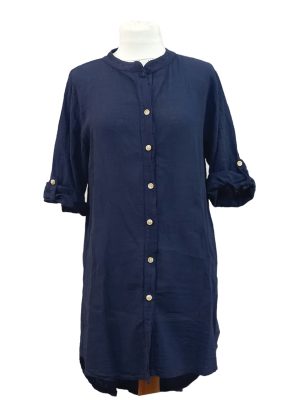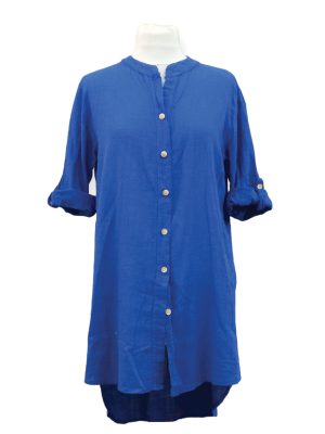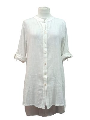 Βαμβακερή πουκαμίσα ασύμμετρη με κουμπιά μέχρι κάτω.