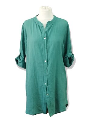 Μπορείτε να την φορέσετε κουμπωμένη ριχτή ή με μια ζώνη στην μέση ως shirt-dress ή ανοιχτή με ένα τοπ εσωτερικά. Τα μανίκια τις είναι 3/4 με λουράκι που μπορείτε να τα μαζέψετε ψηλά.